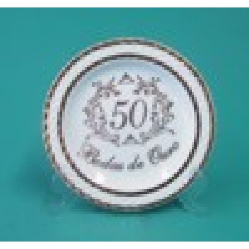 Prato com relevos 19,5 cm. - Decoração Bodas de Ouro - acompanha suporte transparente